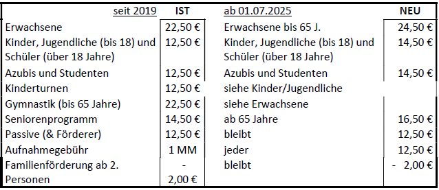 Die Versammlung möge beschließen ab 01.07. 2025 die Mitgliedsbeiträge wie folgt anzupassen: